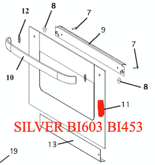 Fisher Paykel Smaller Oven Door Outer Glass B1602ED Silver, 87862, 80103-B, 80140-B, 84624-B, BI603ED, BI453E, BI603ED